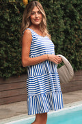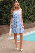 Sky Blue Stripe U Neck Sleeveless Loose Fit Mini Dress