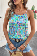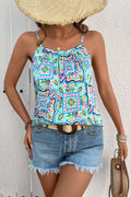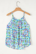 White Rhinestone Boho Floral Printed Spaghetti Strap Tank Top